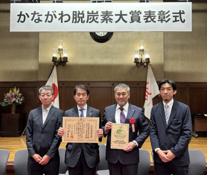2月3日、神奈川県庁にて神奈川県環境農政局脱炭素戦略本部室が主催する第2回かながわ脱炭素大賞表彰式が行われました。当社で建造した世界初のアンモニア燃料船「魁」は先進技術・導入部門で高く評価され脱炭素大賞を受賞しました。